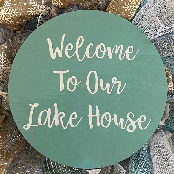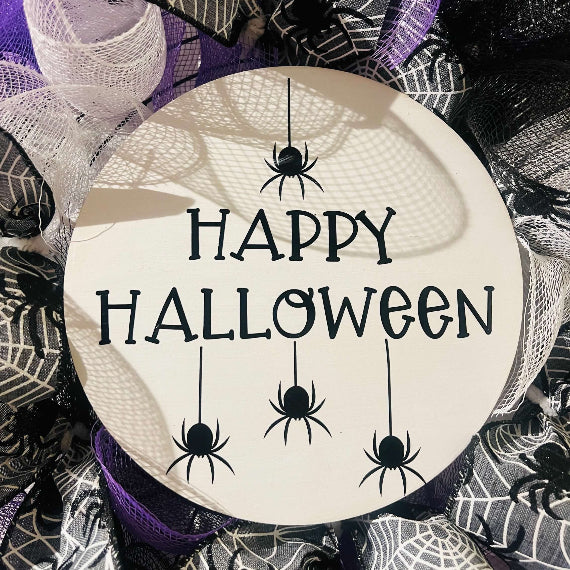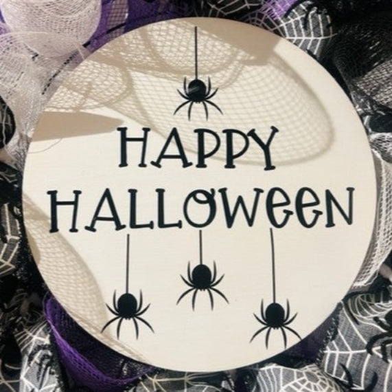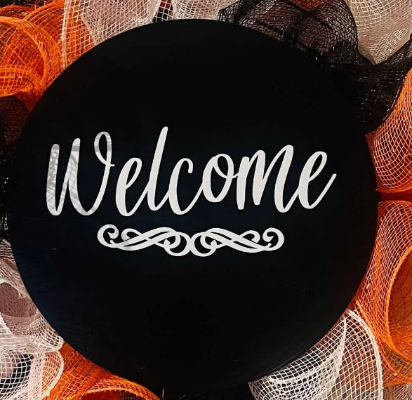 Select from an elegant collection of round wood signs showcasing designs like Welcome to Halloween and Let it Snow.